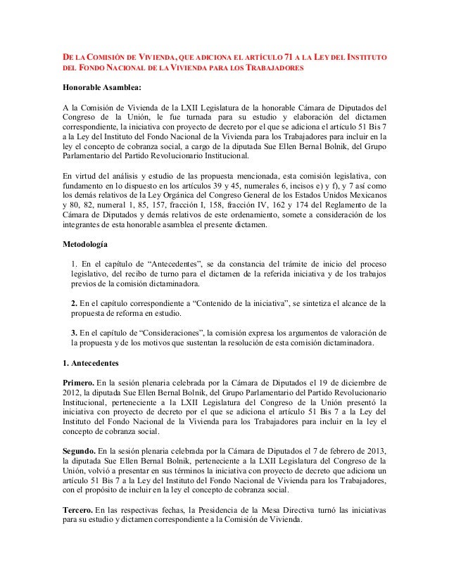 EL ARTÍCULO 71 A LA LEY DEL INSTITUTO DEL FONDO NACIONAL DE LA VIVIEN…