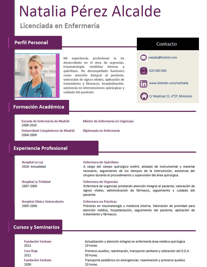 Curriculum Vitae de Enfermería > Ejemplos y Formatos Mil Formatos