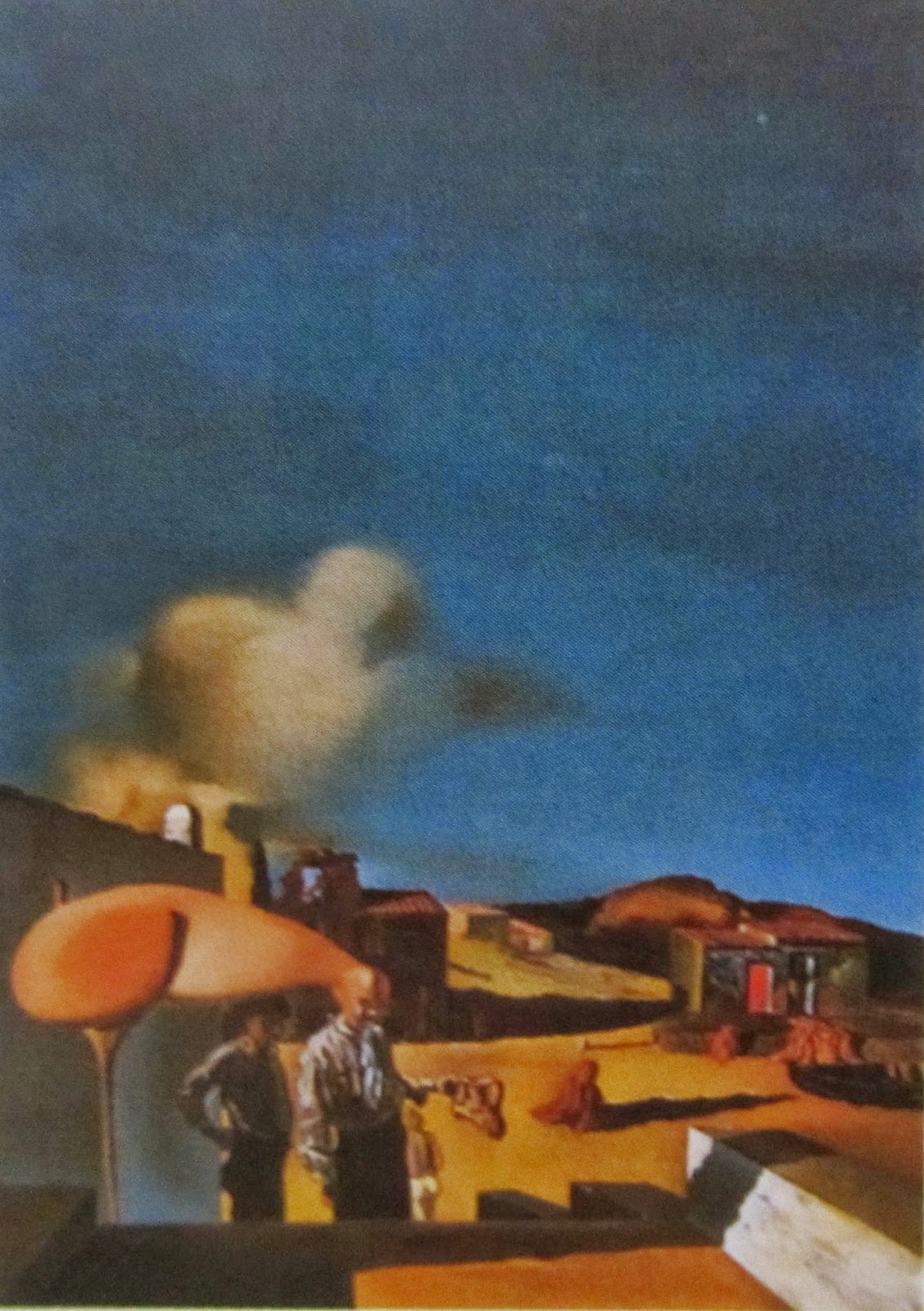 En 1936, pintó Construcción blanda con judías hervidas (Premonición de la guerra civil). La pintura expresa la naturaleza autodestructiva de una guerra civil, representada por el monstruo autodestructivo. Es surrealista, pero Dalí también incluye elementos realistas para enfatizar la realidad de la guerra que se acerca. Dijo que la razón.