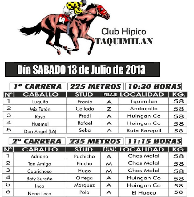 TURF DE LA PATAGONIA 13/07 PROGRAMA DE CARRERAS DE CABALLOS EN TAQUIMILAN