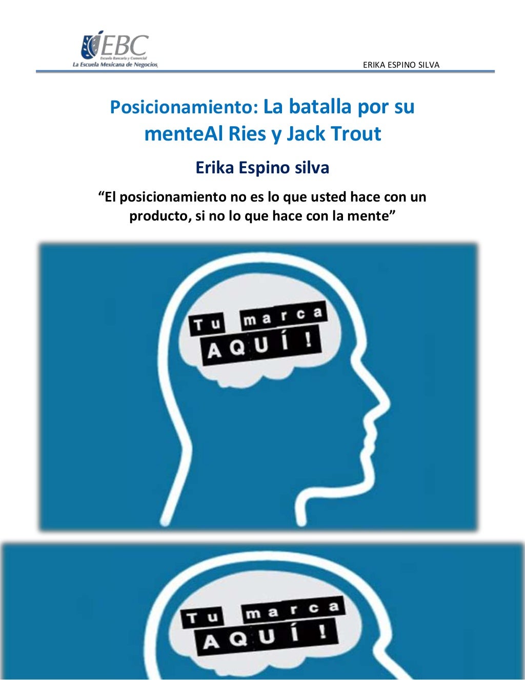 See Full PDFDownload PDF. Posicionamiento: la batalla por su mente Cómo ser percibido en un mercado superpoblado Al Ries y Jack Trout ¿En Qué Consiste el Posicionamiento? El posicionamiento se refiere a lo que se hace con la mente de los probables clientes; o sea, como se ubica el producto en la mente de éstos.