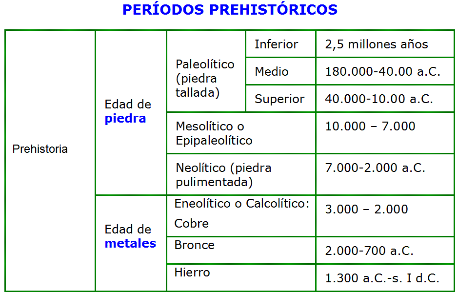 Etapas de la prehistoria (con fechas y esquema)