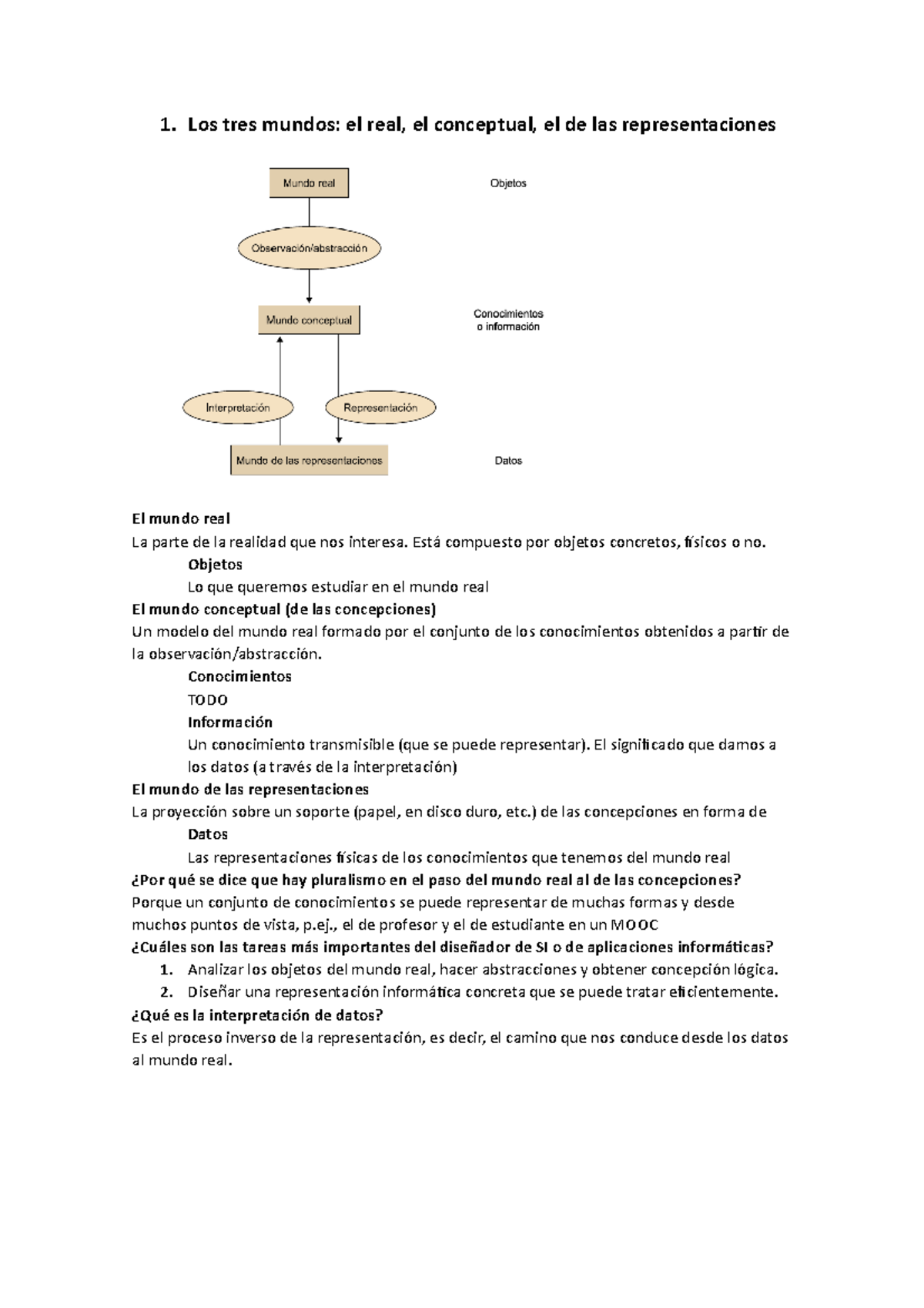 1 Resumen Los datos conceptos introductorios 1. Los tres mundos el real, el conceptual