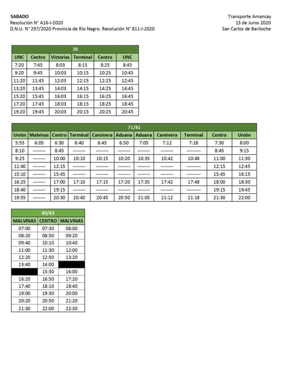 Horarios de Mi Bus para el fin de semana y feriado ANB Agencia de Noticias Bariloche