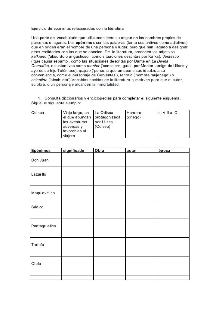 Ejercicios de literatura Recurso educativo 35444 Tiching