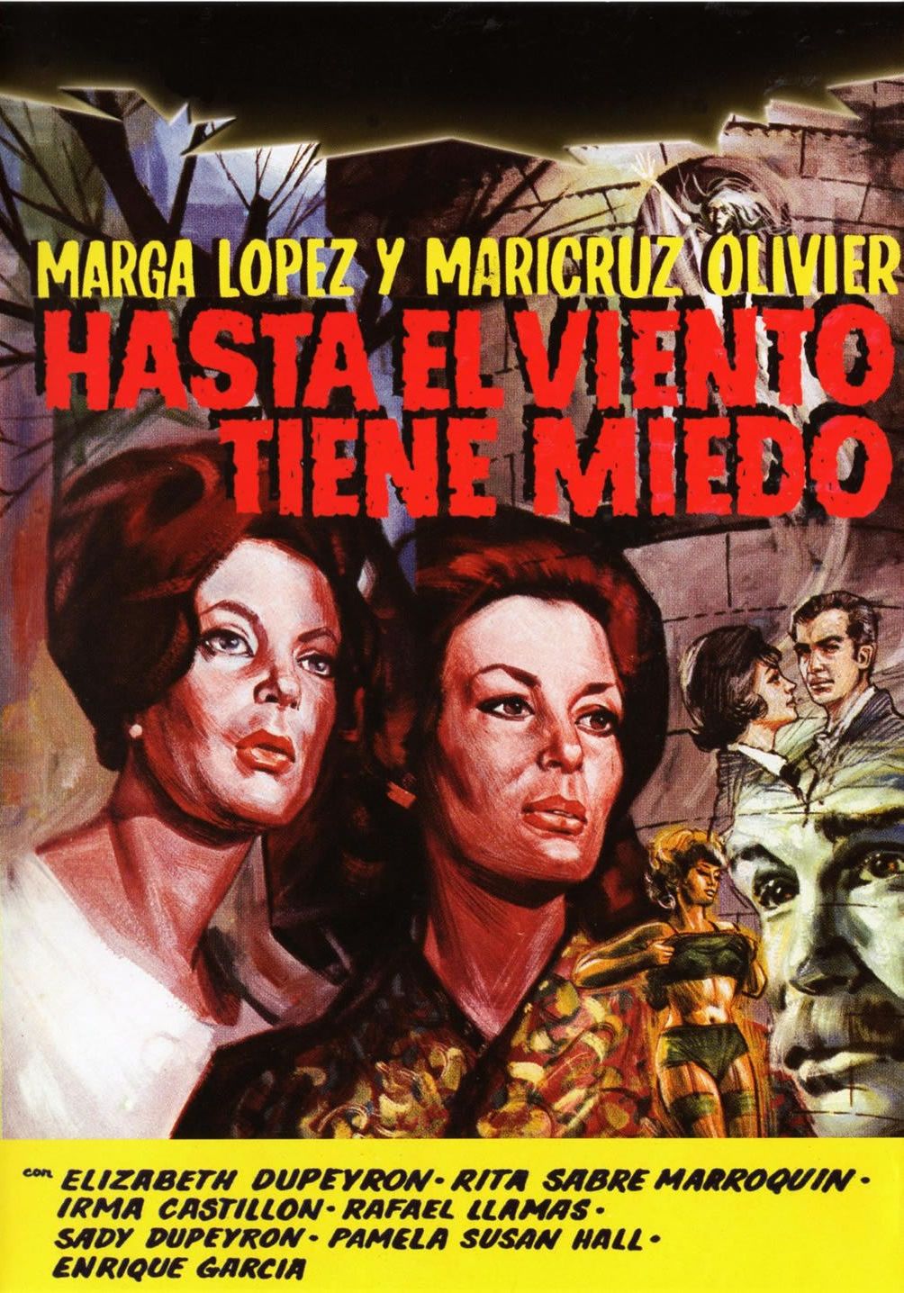 Hasta el viento tiene miedo (Even the Wind is Afraid) is a 1968 (1967 according to the ITESM) Mexican gothic supernatural horror film, written and directed by Carlos Enrique Taboada and is considered a cult movie in México. Fantasy 1968 1 hr 27 min. PG-13. Starring Marga López, Maricruz Olivier, Alicia Bonet. Director Carlos Enrique Taboada. ML.