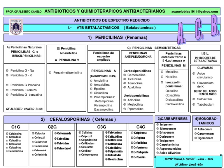Capacidad para lesionar el cartílago en la fase de crecimiento, por lo que su uso en embarazadas, gestantes y niños es restringido. Efectivas via oral, se recomienda dividir en varias dosis al día. Tabla descriptiva de la clasificación de antibióticos os clasificación betalactámicos penicilinas subclasificación penicilinas naturales.