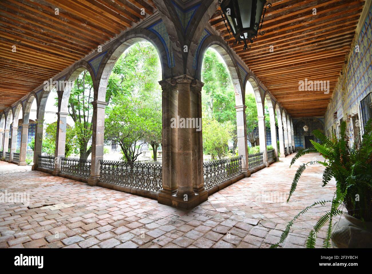 Scenic exterior porch view of the Colonial Hacienda de Peotillos in Villa Hidalgo, San Luis