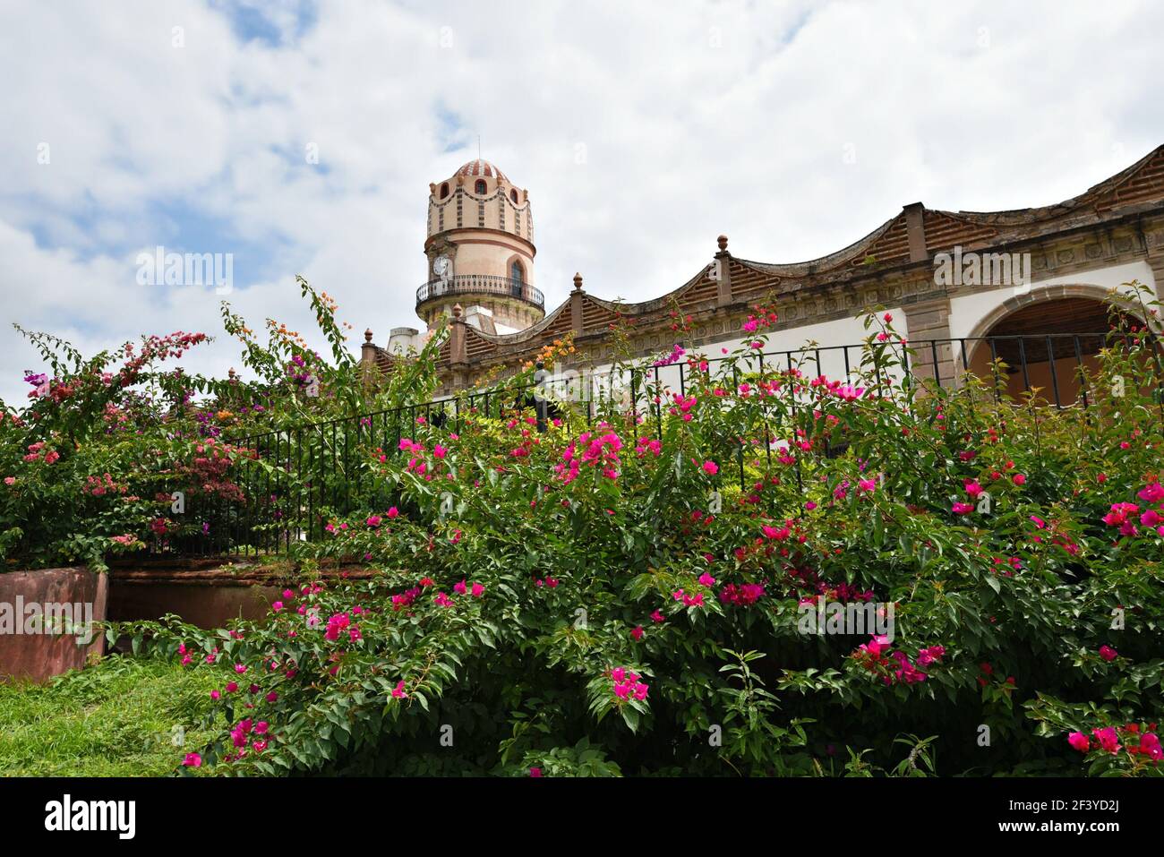 Tower view of the Colonial Hacienda de Peotillos in Villa Hidalgo, San Luis Potosí Mexico Stock
